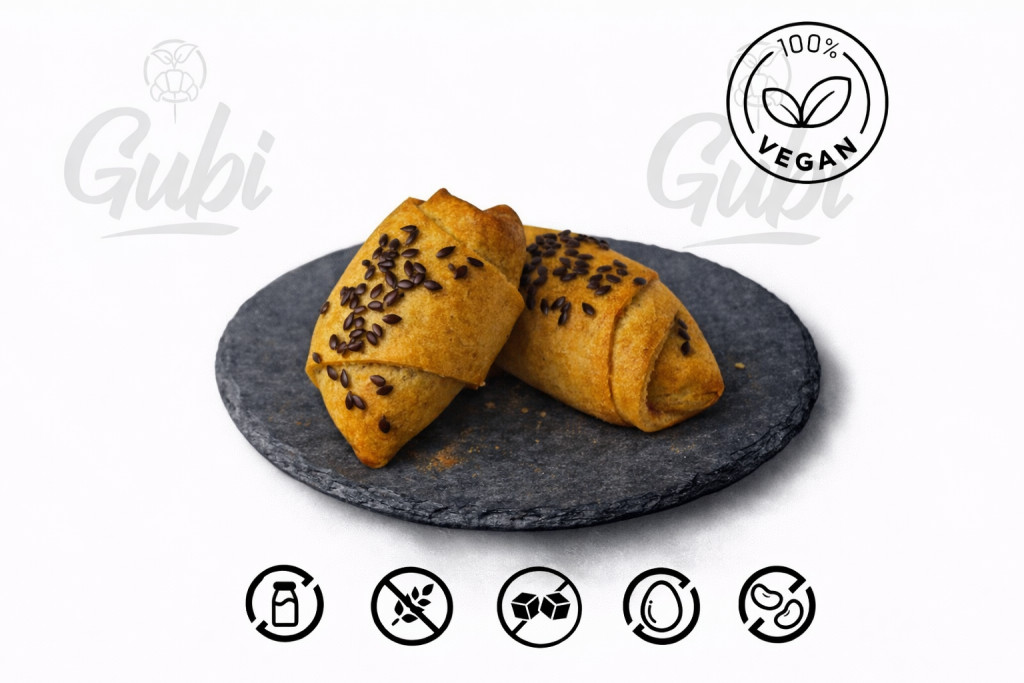 Gubi lisztkeverék (Kölesliszt, barnarizsliszt, tápióka keményítő, bambuszrostliszt, aranylenmagliszt, útifűmaghéjliszt, citromsav, szódabikarbóna), sütőpor, vegán vaj (növényi zsírok és olajok, víz, só, citromsav, béta karotin), virsli (sertéshús 83%, víz, étkezési só, dextróz, fűszerek, fűszerkivonatok, füstaroma), só, víz, borecet, paradicsomszósz, négyszeres eritrit (stevia), kókuszolaj, lenmag.