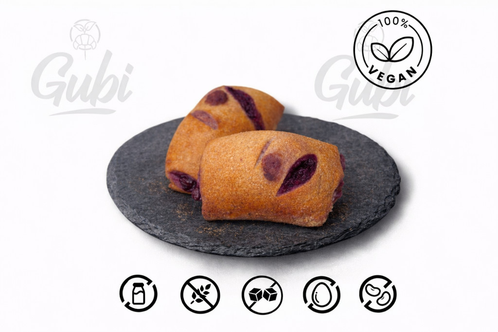 Saját Gubi lisztkeverékünkkel készítjük, barnarizs- és kölesliszt alappal, útifűmaghéjjal és bambuszrosttal, hogy az állag könnyed és élvezhető legyen. Az édességről nálunk eritrit és stevia gondoskodik, a vanília, a fahéj és a finom rumaroma pedig igazán kerek, otthonos ízvilágot ad. A töltelékben ott a meggy, amitől a párna gyümölcsösen szaftos, a baracklekvár pedig lágyan kiemeli az ízek harmóniáját.