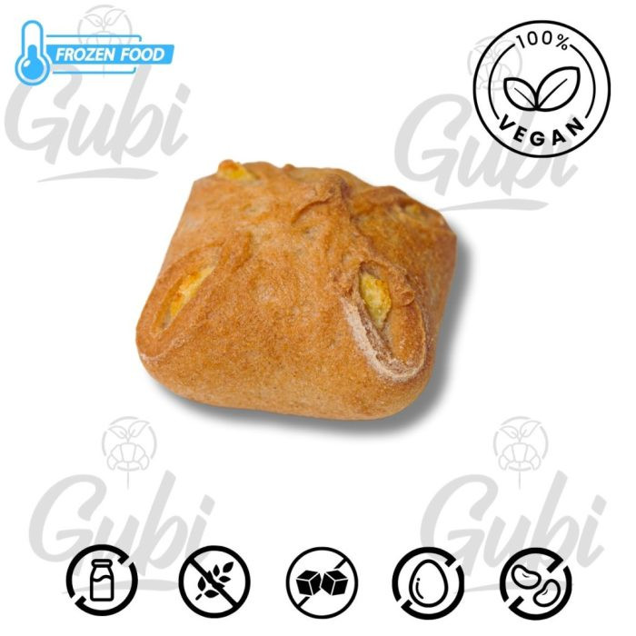 Saját Gubi lisztkeverékünkkel készítjük, amelyben a barnarizsliszt, kölesliszt és tápióka keményítő gondoskodik a kellemes állagról, az útifűmaghéj és a bambuszrost pedig a tartásról és a könnyebb emészthetőségről. A finom, „túrós” krémességhez kókusztejet és vegán tejszínt használunk, a lágy ízt pedig bourbon vaníliával és természetes aromákkal tesszük még harmonikusabbá.