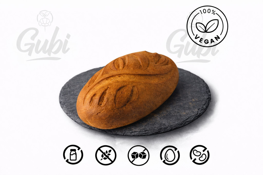 Gubi lisztkeverék (barnarízsliszt, kölesliszt, tápiókakeményítő, bambuszrostliszt, aranylenmagliszt, útifűmaghéjliszt), vegán vaj (növényi zsírok és olajok, víz, só, citromsav, béta karotin), Gubi saját nevelésű vadkovász, só, víz, olívaolaj.